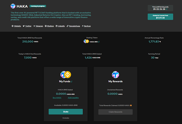 To stake into the HAKA BNB Token pool, you will need to have the HAKA-BNB Token. For the same, you will need to add liquidity